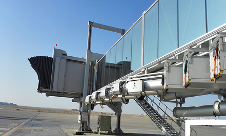 A380登機橋二層U1超高艙門而設計的登機橋,采用了行業內首創的四輪驅動行走機構及其控制系統。旋轉伸縮式機橋旋轉伸縮式旅客登機橋是對接飛機和機場航站樓(或固定橋)的一種帶有封閉式旅客過道的登機設備。T橋T型旅客登機橋是對接飛機和機場航站樓(或固定橋)的一種帶有T字型封閉式通道的登機設備,通過伸縮通道平移機構實現登機橋的平移運動。